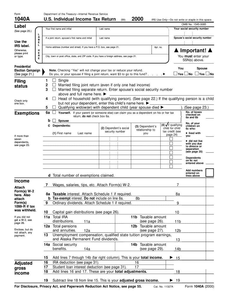 Printable Federal Income Tax Form 1040 Printable Forms Free Online