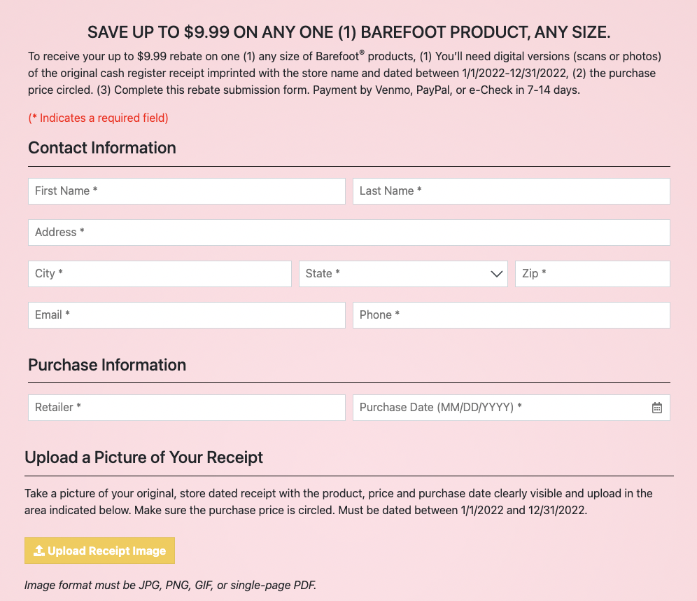 With Barefoot Wine Printable Rebate Forms, all you have to do is purchase a qualifying bottle of Barefoot Wine, fill out the form, and submit it online or by mail. Once your rebate is approved, you will receive a check in the mail for the specified amount. It’s that easy!