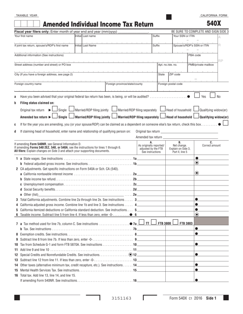 Form 540X Fill Out Sign Online And Download Printable PDF