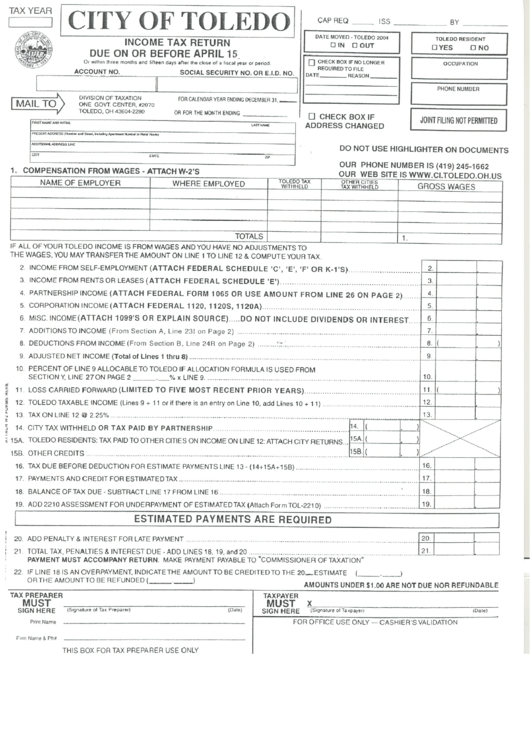 City Of Toledo Income Tax Return Form Printable Pdf DownloadCity Of Toledo Income Tax Return Form Printable Pdf Download