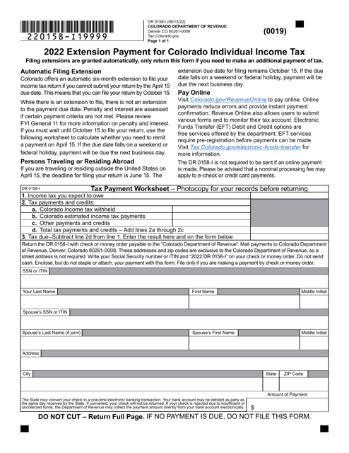 Form DR0158 I Download Fillable PDF Or Fill Online Extension Payment