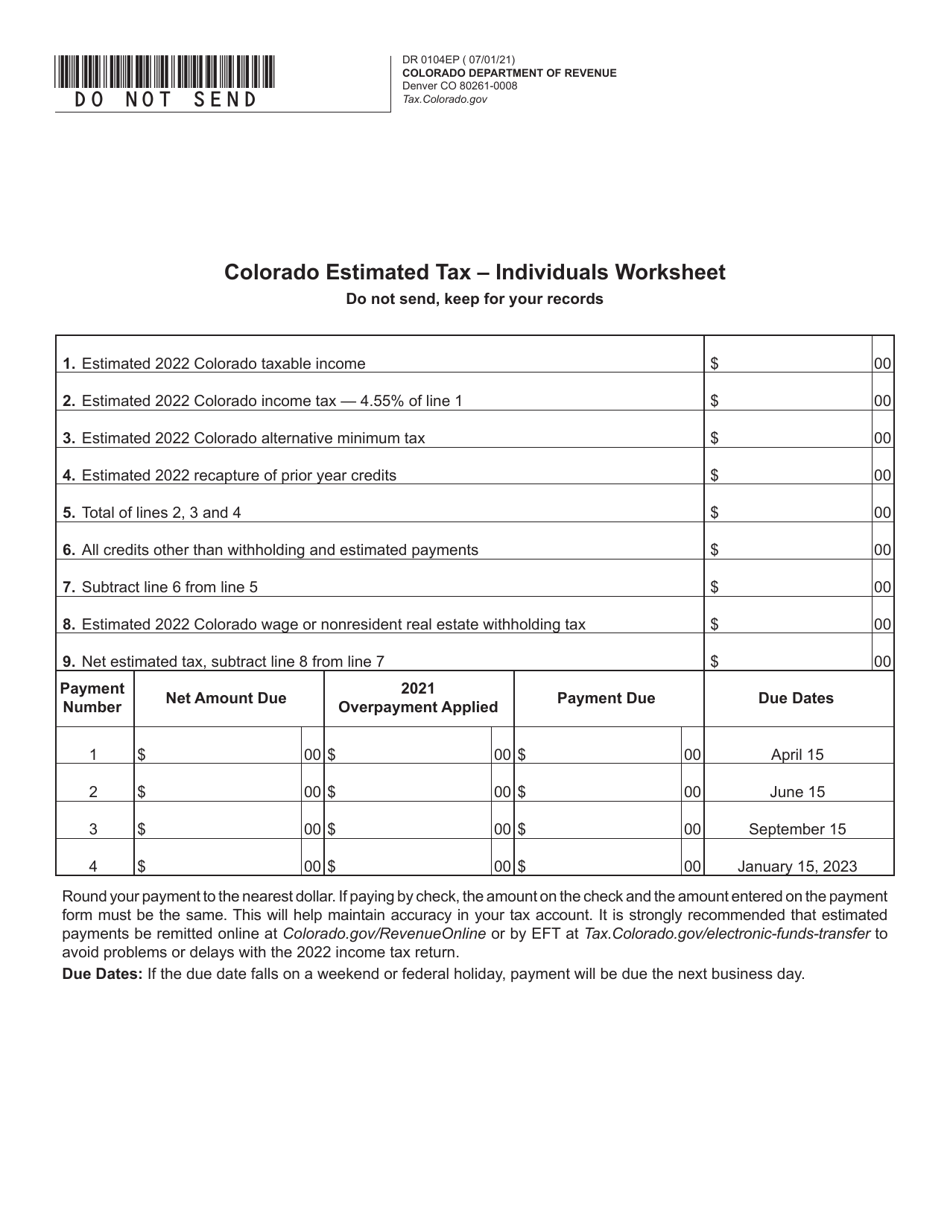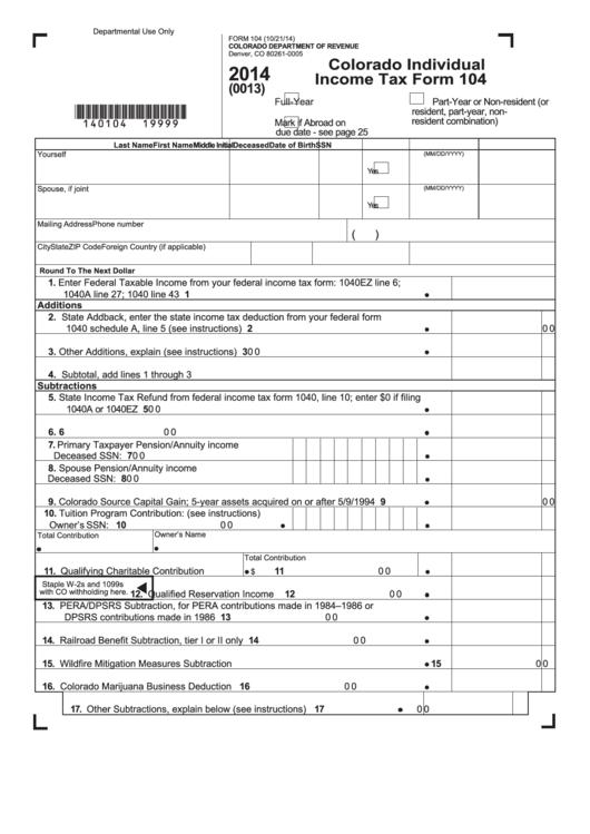 Form DR0104 Download Fillable PDF Or Fill Online Colorado Individual