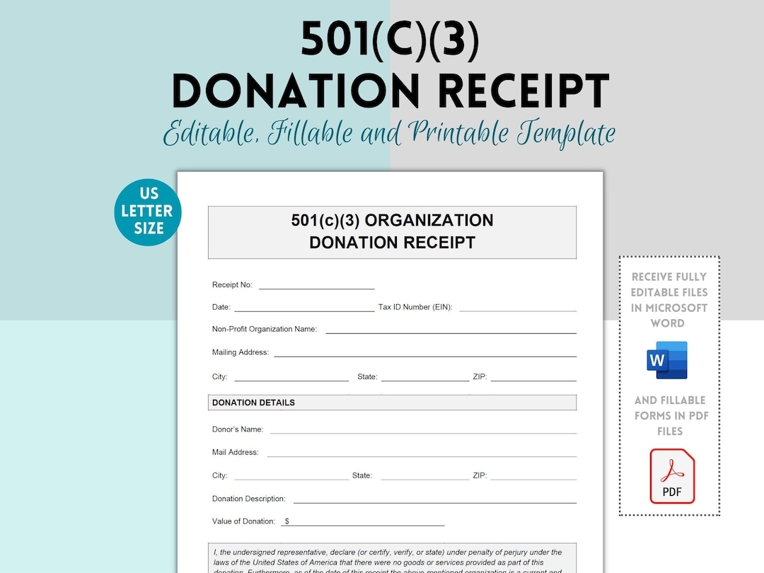 501 C 3 Donation Receipt 501 C 3 Donation Receipt Template 501 C 3 Donation Receipt Form Editable Donation Receipt Charity Receipt Etsy