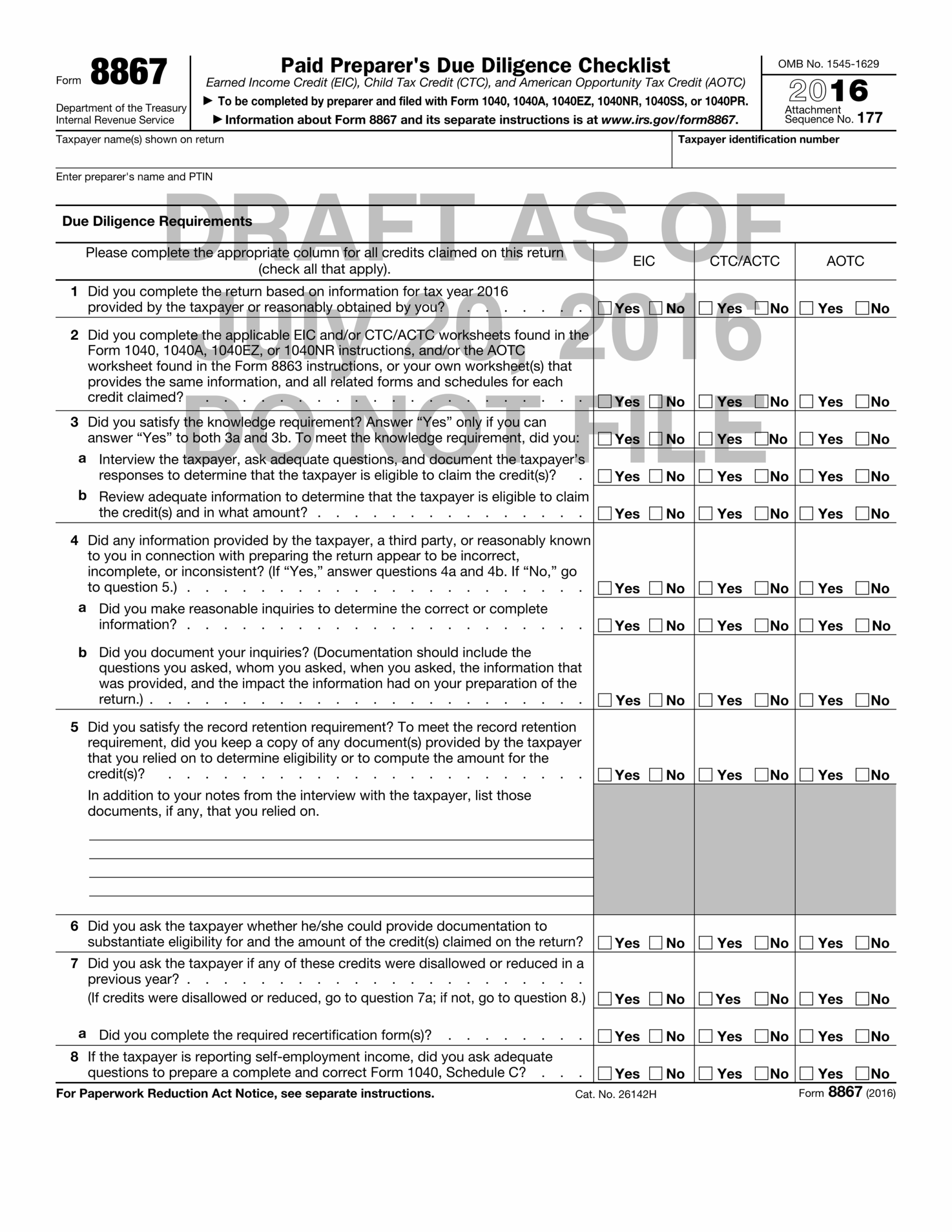 Draft Of Form For Expanded Preparer Due Diligence Released By IRS Current Federal Tax Developments