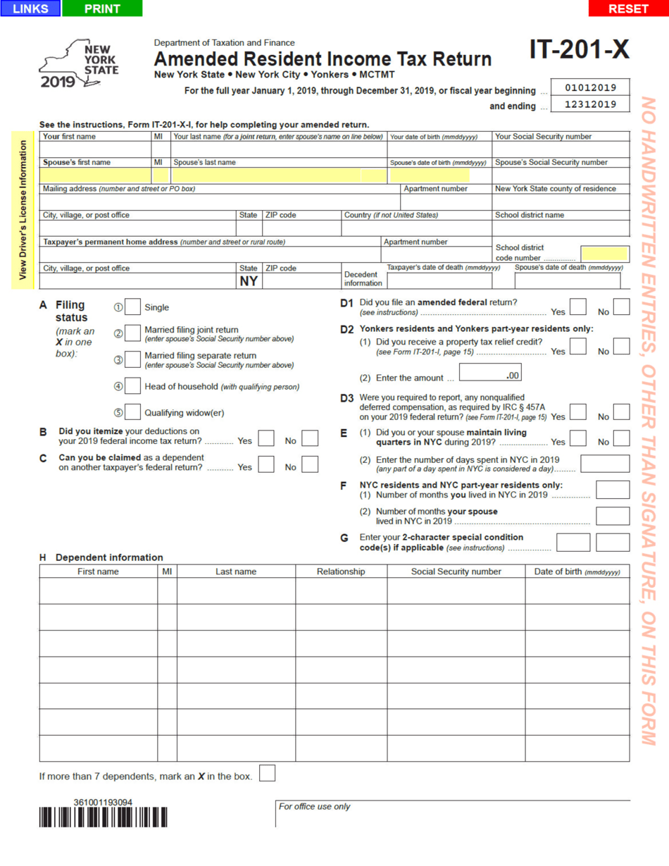 Form IT 201 X 2019 Fill Out Sign Online And Download Fillable PDF New York Templateroller
