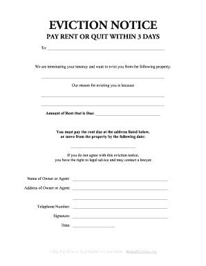 Free Three 3 Day Eviction Notice To Pay Or Quit PDF Word EForms