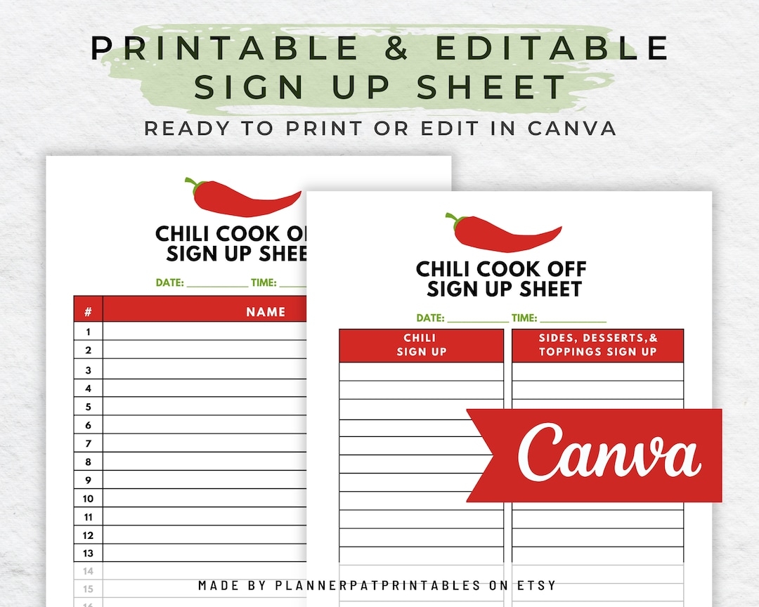 Editable Chili Cook Off Sign Up Sheet Printable For Community Chili Competition EtsyEditable Chili Cook Off Sign Up Sheet Printable For Community Chili Competition Etsy