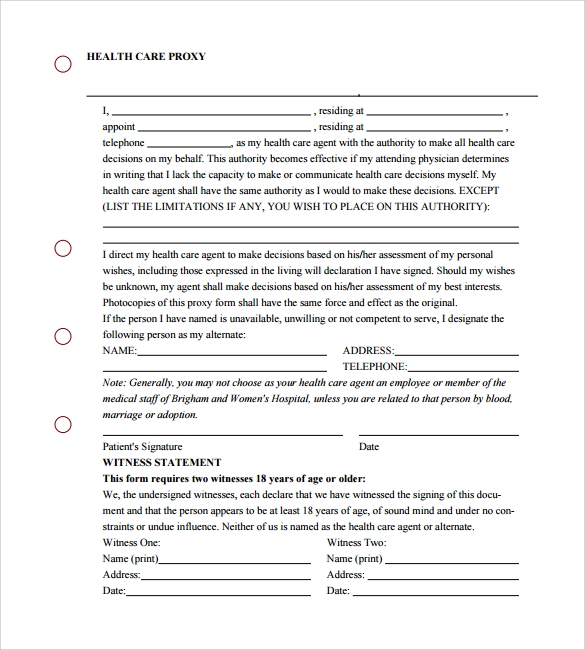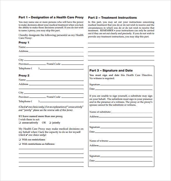 FREE 7 Sample Health Care Proxy Forms In MS Word PDF