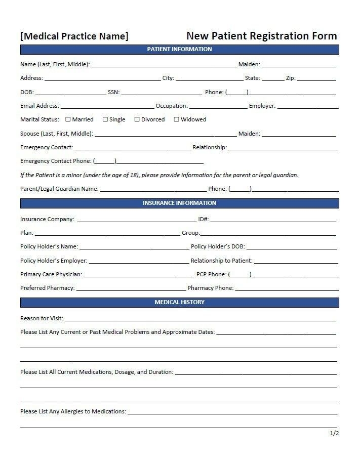 New Patient Registration Form Template Word Editable Etsy In 2023