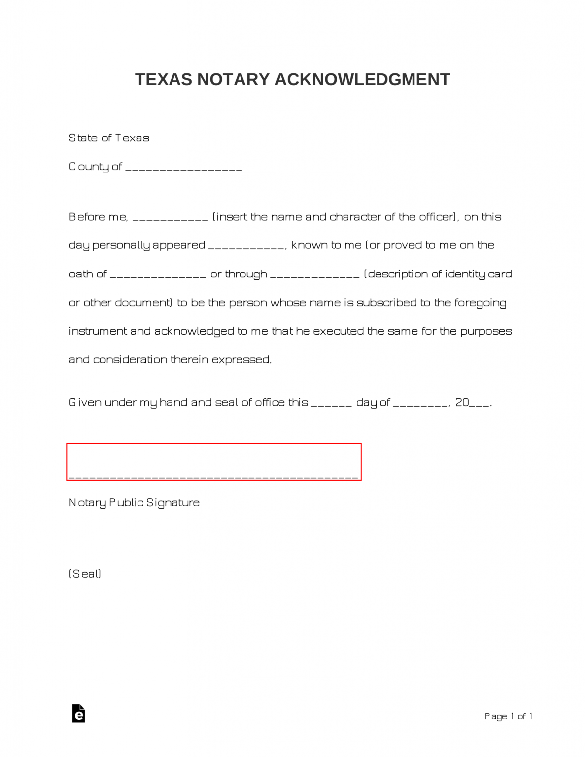 Free Texas Notary Acknowledgment Form PDF Word EForms
