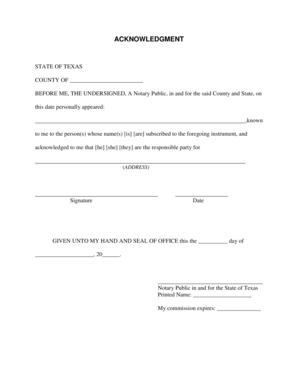 Texas Notary Acknowledgment Form Fill Out Sign Online And Download