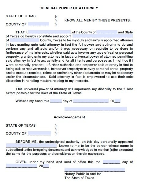 Free General Power Of Attorney Form Texas