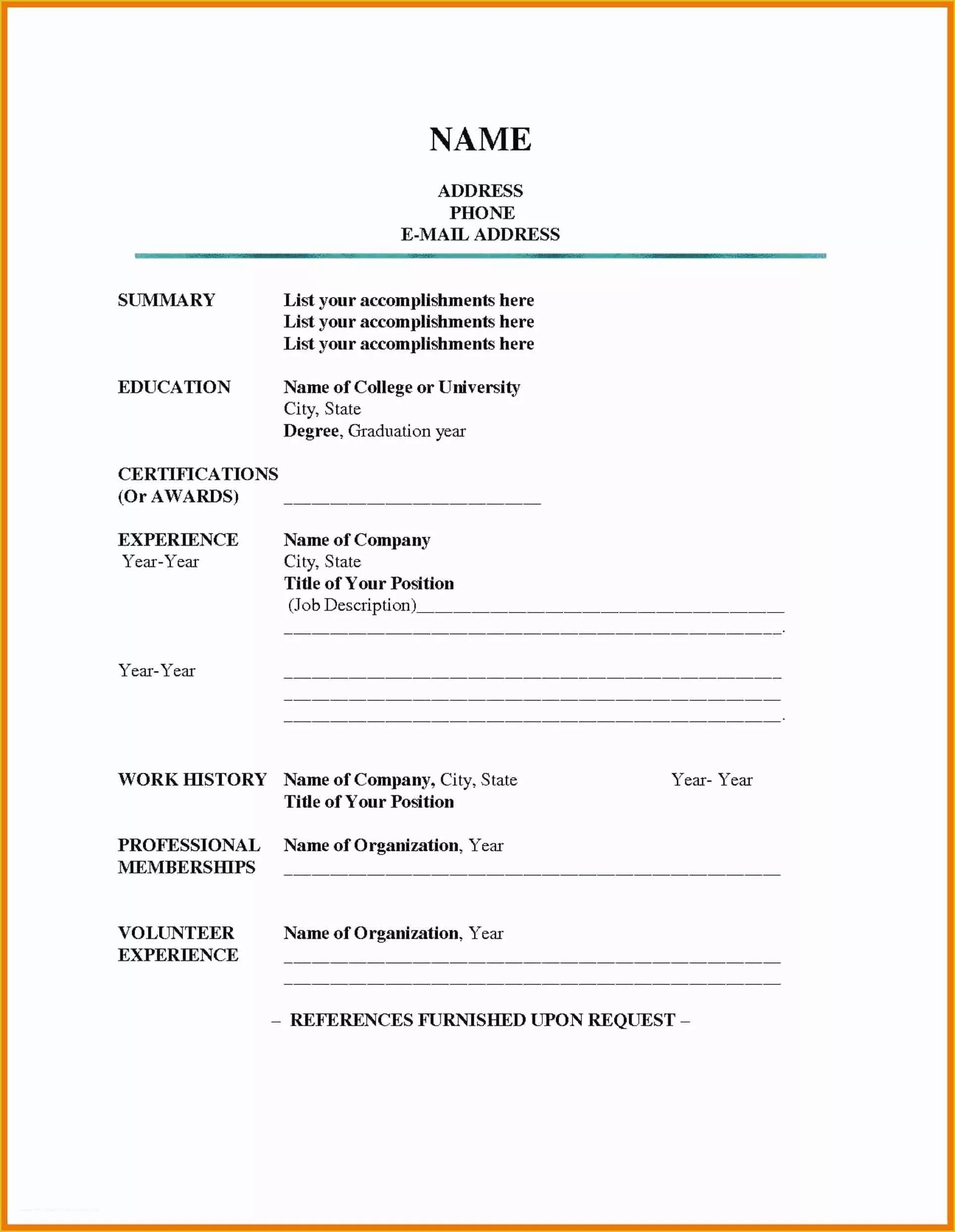 Free Printable Resume Forms