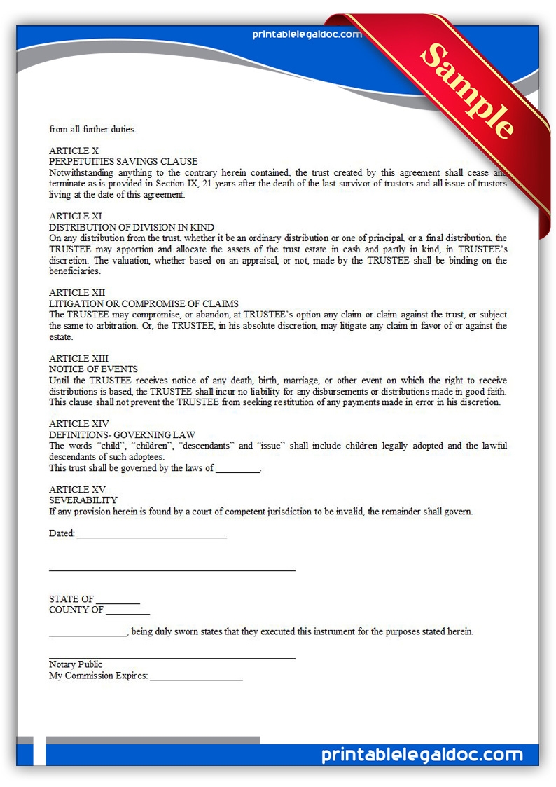 Free Printable Trust Forms