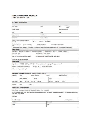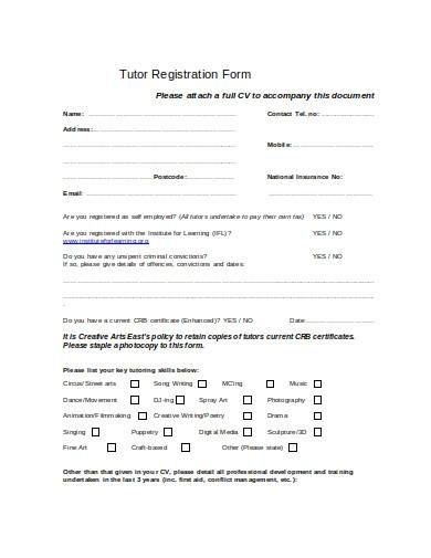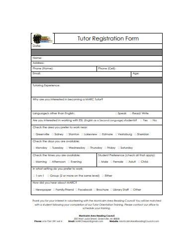 Download and Print Free Printable Tutoring Registration Form Templates