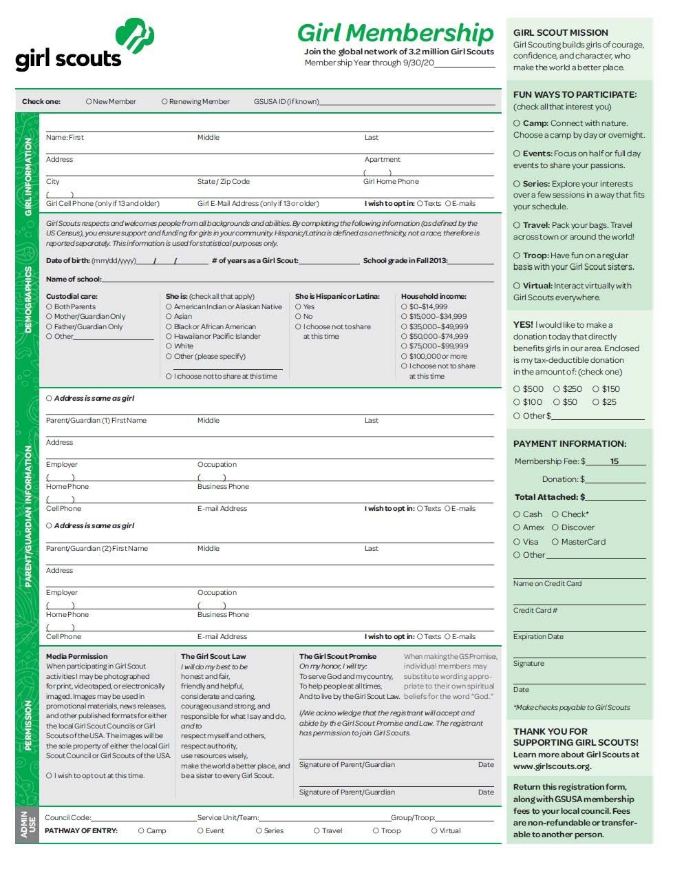 Get and Print Girl Scout Registration Form Printable Atlanta