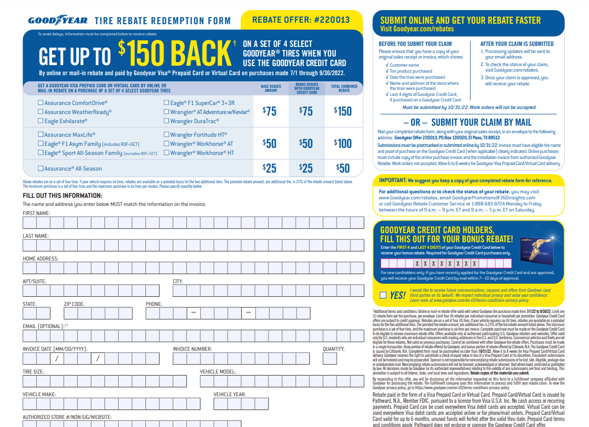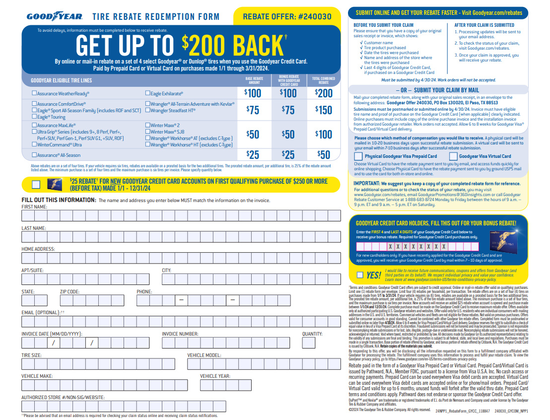 Goodyear Rebate Forms 2025 Printable