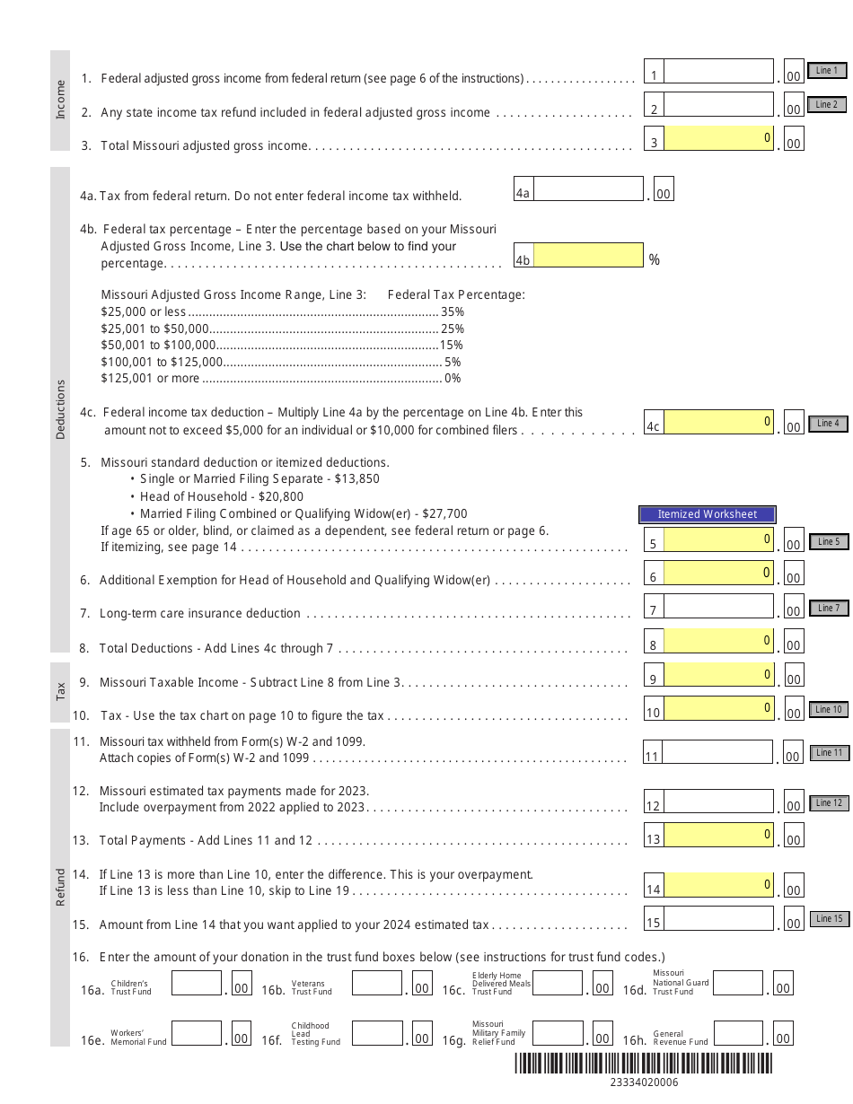 Overall, understanding the various income tax forms for Missouri is essential for ensuring compliance with state tax laws and maximizing your tax savings. By familiarizing yourself with the different forms and requirements, you can streamline the tax filing process and avoid potential penalties for inaccuracies or omissions. If you have any questions or need assistance with filling out your tax forms, consider seeking help from a professional tax preparer or accountant.