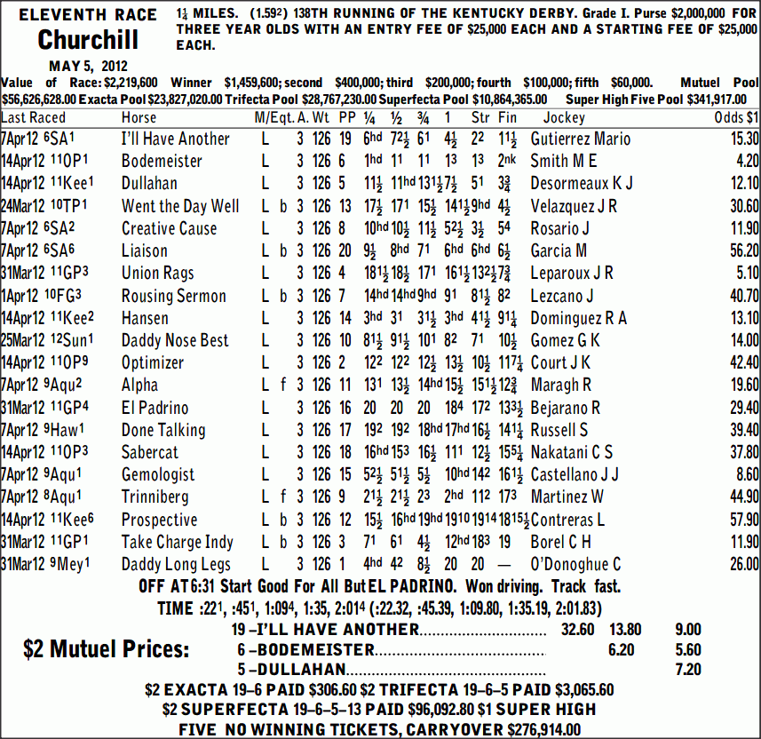 Printable Kentucky Derby Racing Form