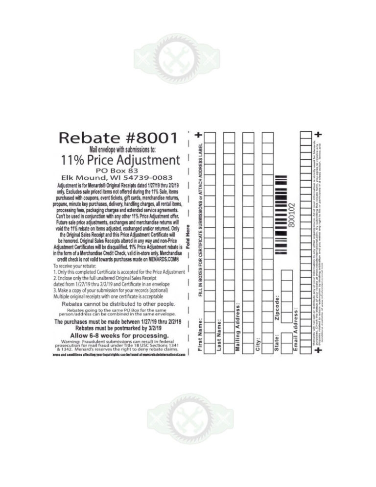 It’s important for customers to carefully read and follow the instructions on the Menards Printable Rebate Form to ensure that their rebate request is processed correctly. By providing accurate information and including all necessary documentation, customers can avoid any delays in receiving their rebate.