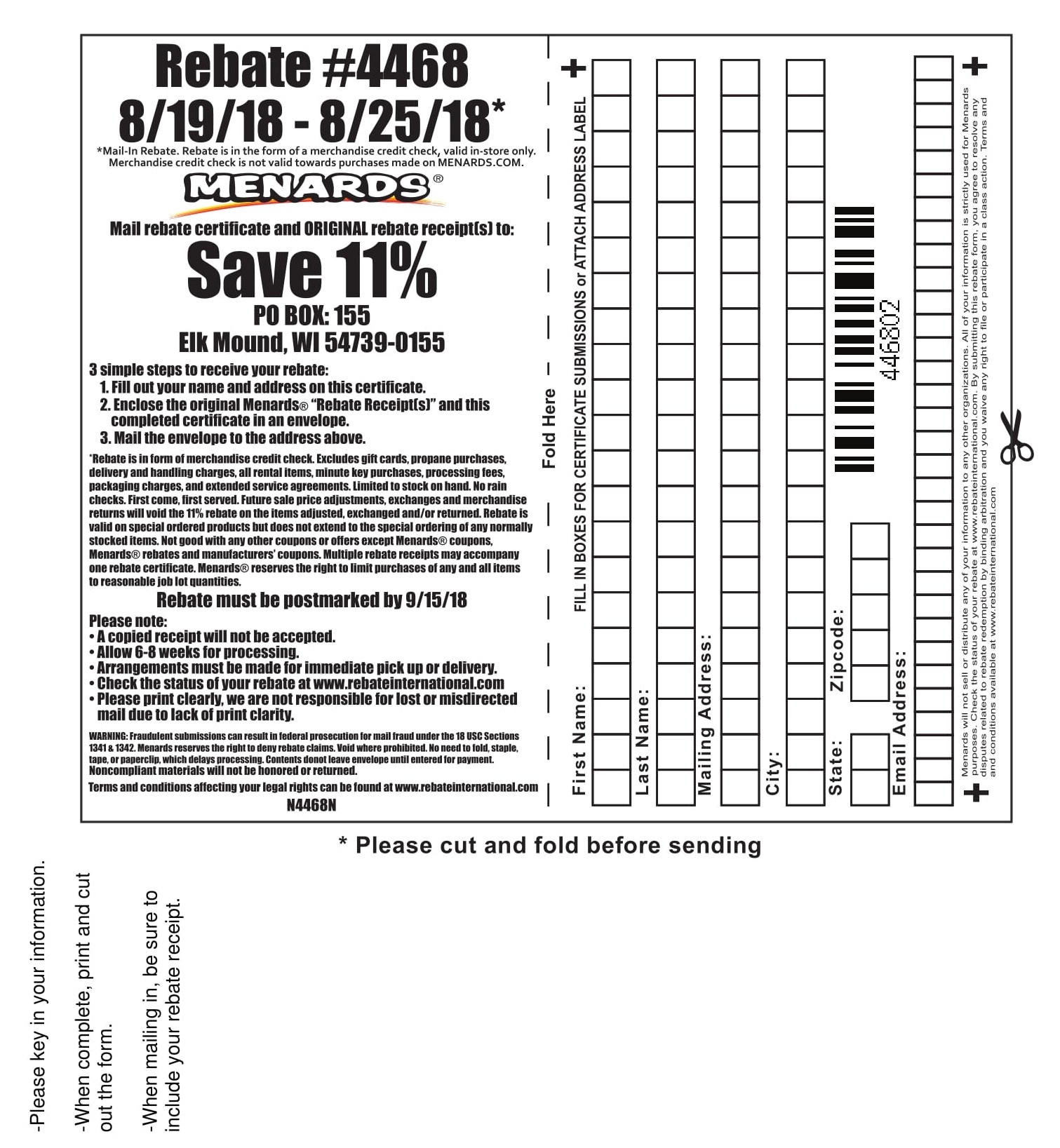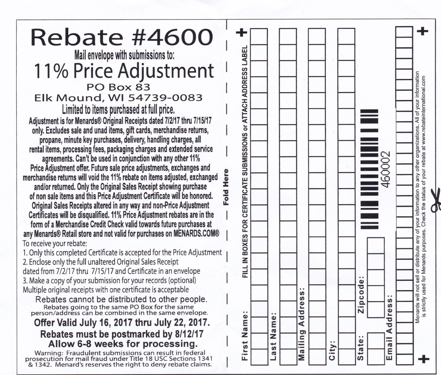 Menards 11 Rebate Form Printable Rebate Form 11Rebate