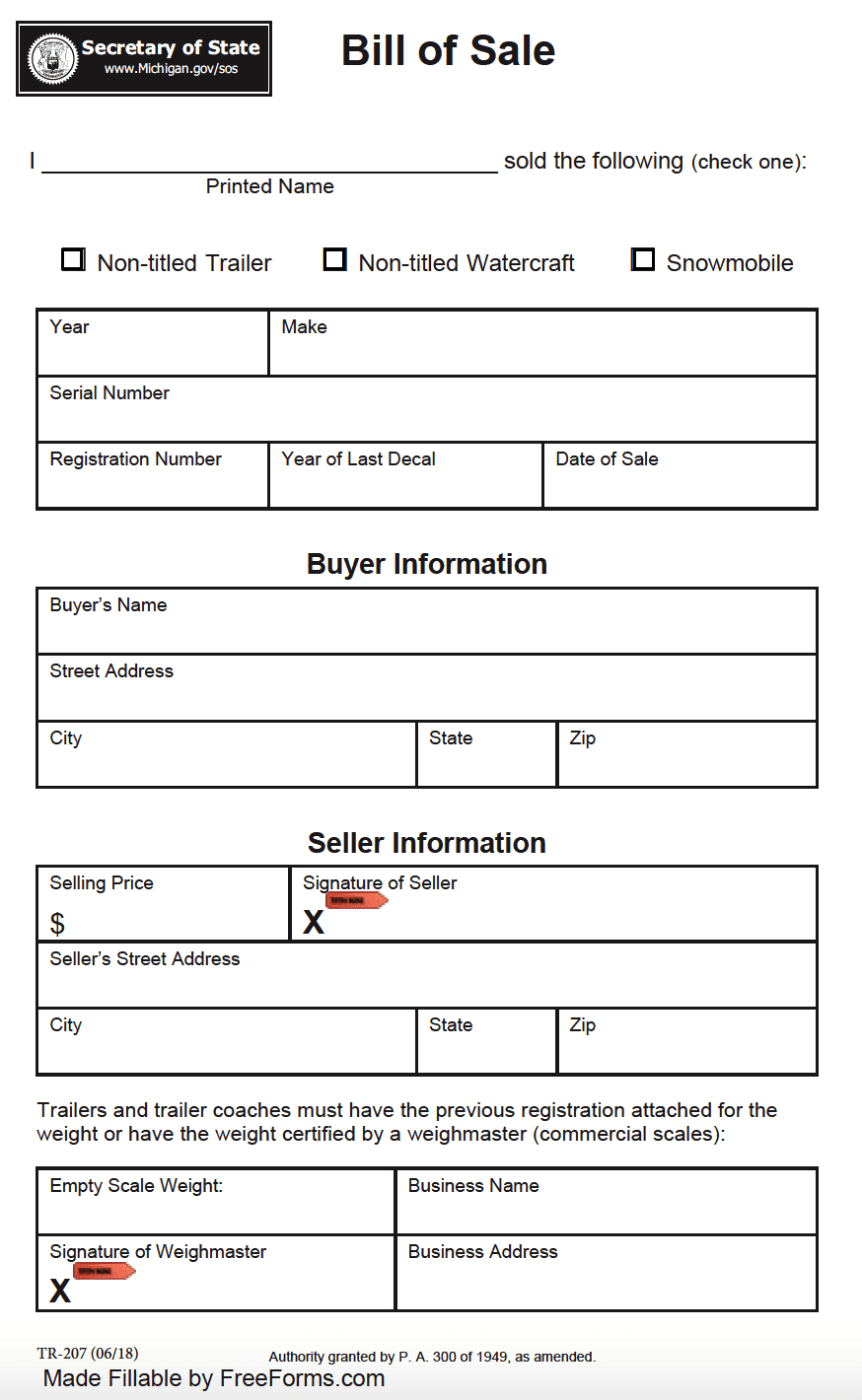 Free Michigan Bill Of Sale Forms PDF