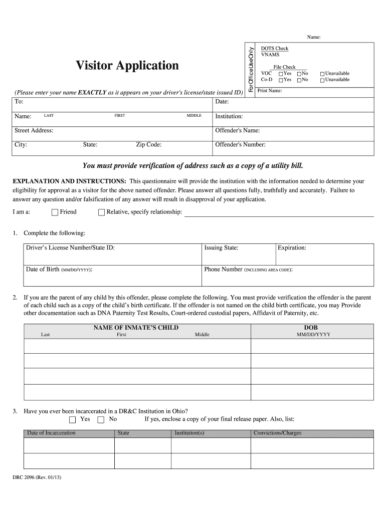 When filling out the ODRC visitation form, you will be required to provide personal information such as your full name, address, and contact information. You may also need to provide information about the inmate you wish to visit, including their name, ID number, and facility location. Additionally, you may be asked to list any individuals who will be accompanying you on the visit.