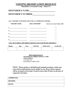 It is important to carefully read and understand the rules and regulations regarding visitation at ODRC facilities before completing the visitation form. Failure to comply with these rules could result in your visit being denied or revoked. Be sure to arrive at the facility on time and follow all guidelines while visiting the inmate to ensure a smooth and successful visit.