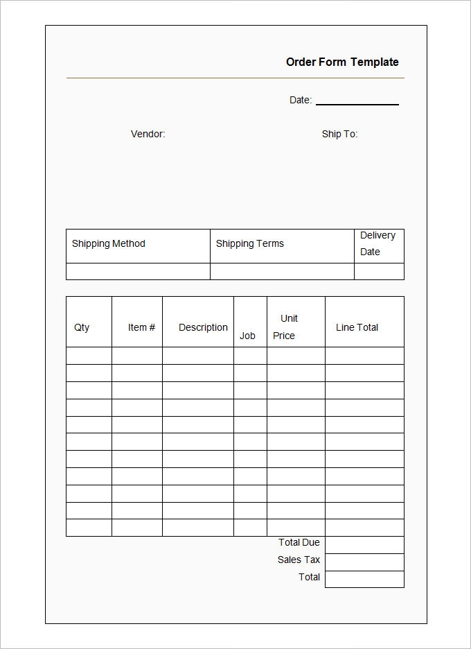 Order Form Template Free Printable