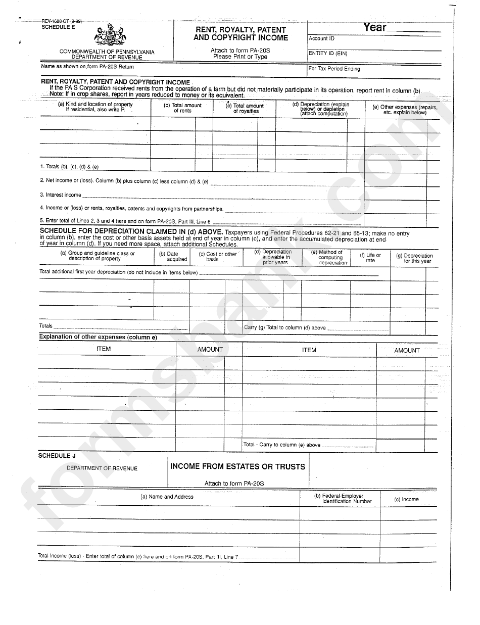 Form Rev 1680 Ct Schedule E Rent Royalty Patent And Copyright Income Pennsylvania Department Of Revenue Printable Pdf Download