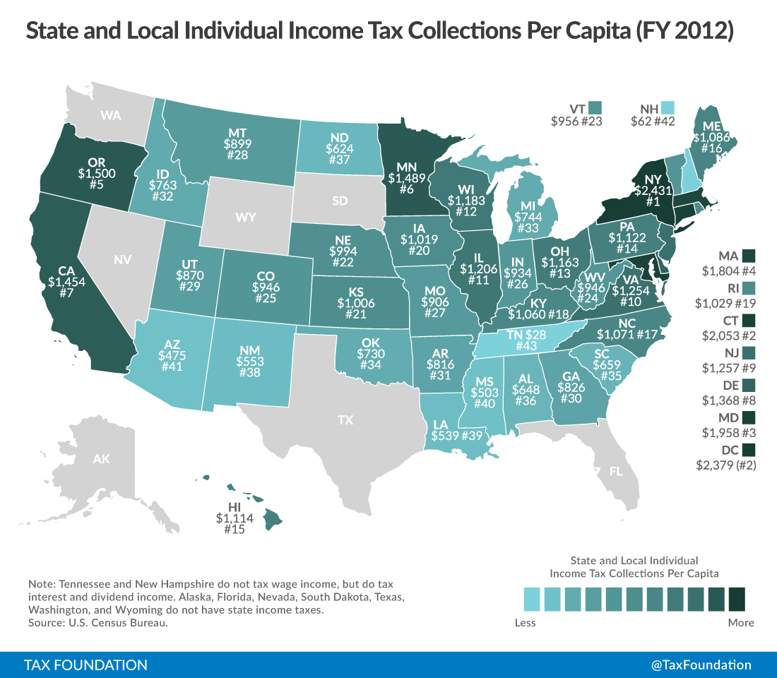 State And Local Individual Income Tax Collections Per Capita Fiscal Year 2012
