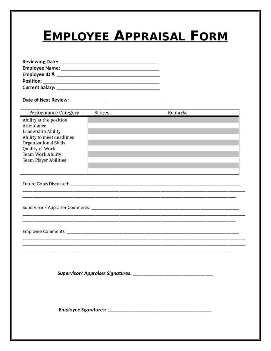 Pdf Downloadable Free Employee Evaluation Forms Printable