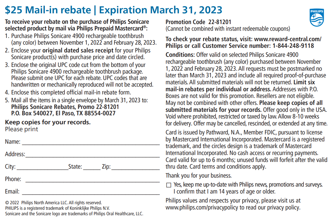 Philips Sonicare Rebate Form 2023 Printable