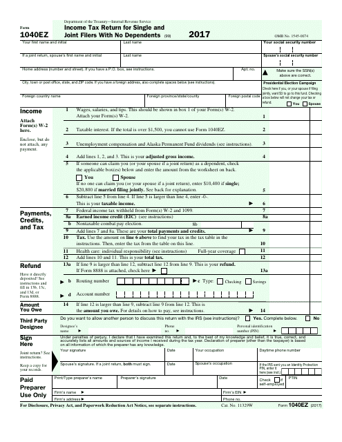 Irs 1040ez Printable Form Printable Forms Free Online
