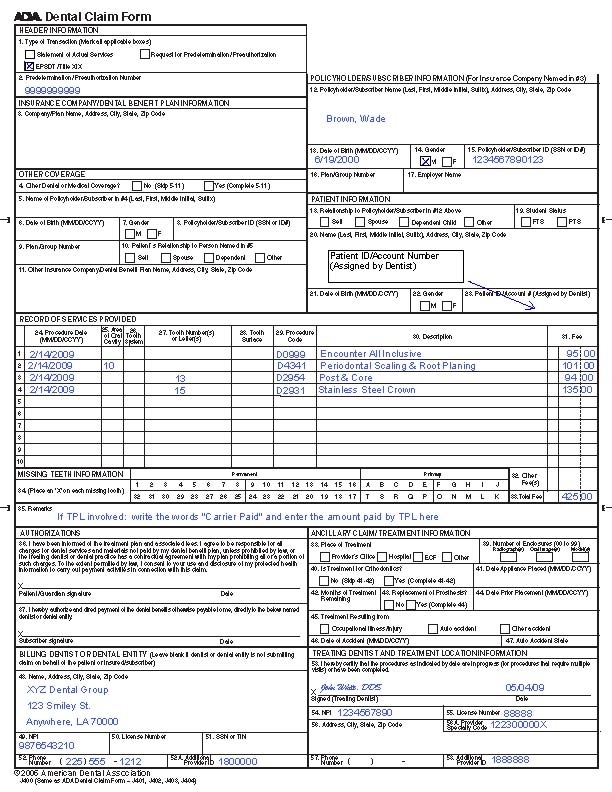 Printable 2006 Ada Dental Claim Form