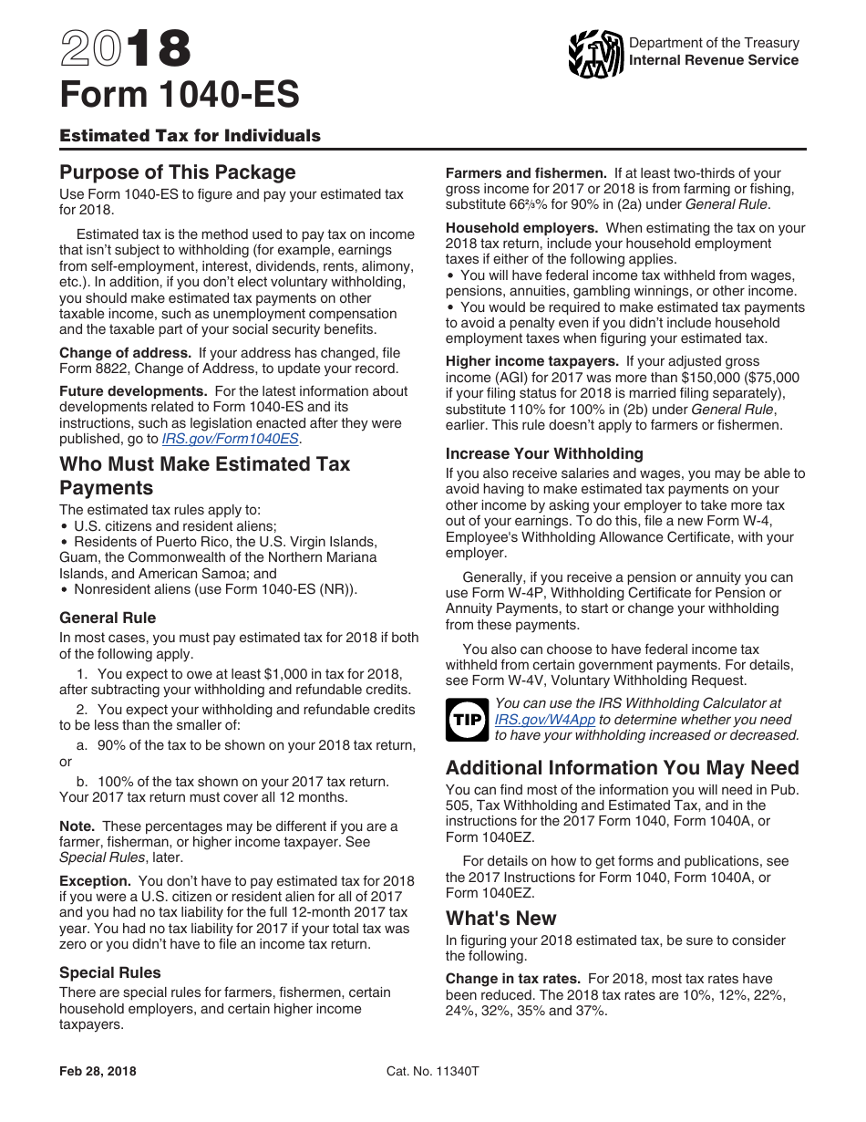 IRS Form 1040 ES 2018 Fill Out Sign Online And Download