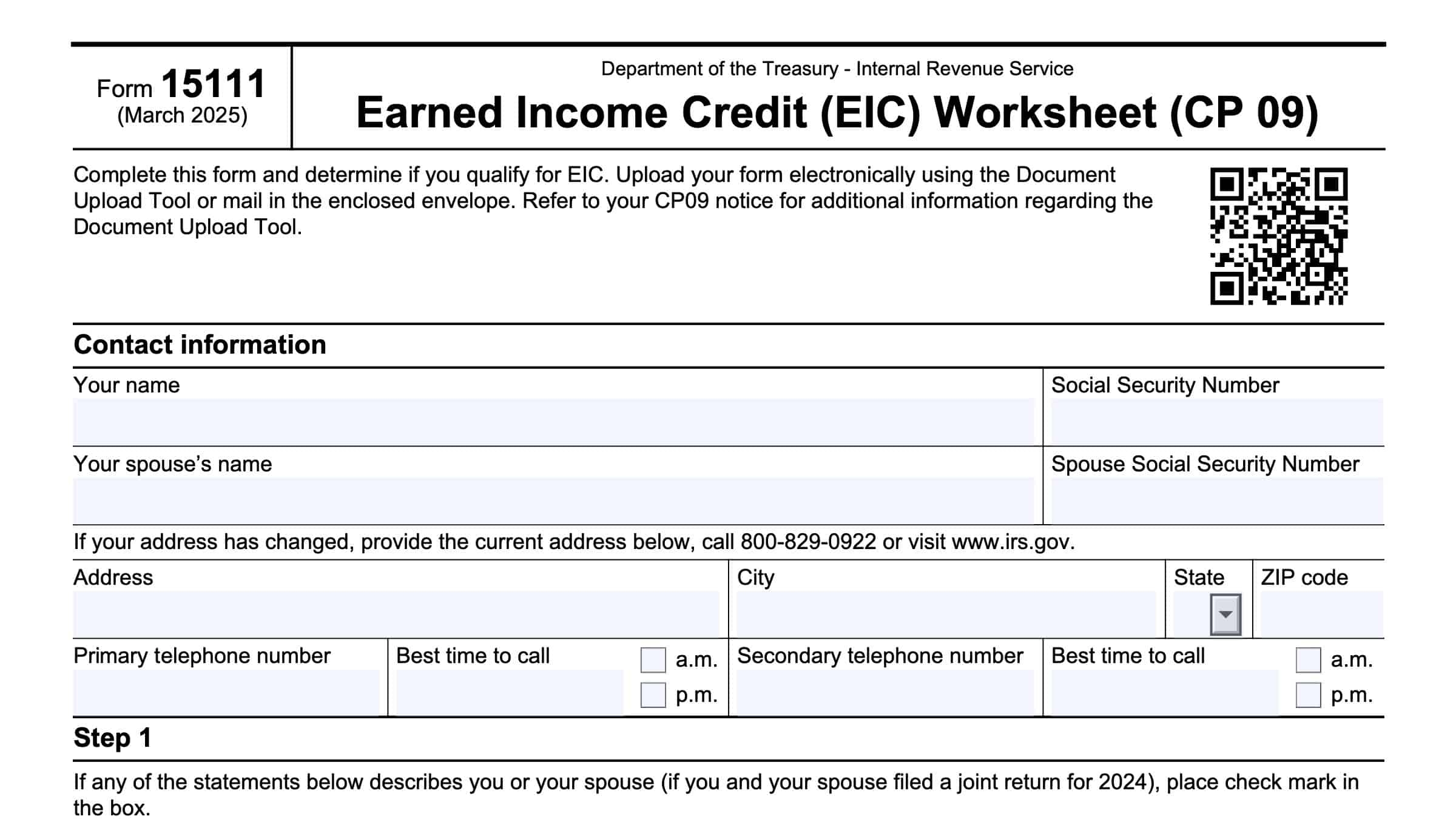 IRS Form 15111 Instructions Earned Income Credit Worksheet