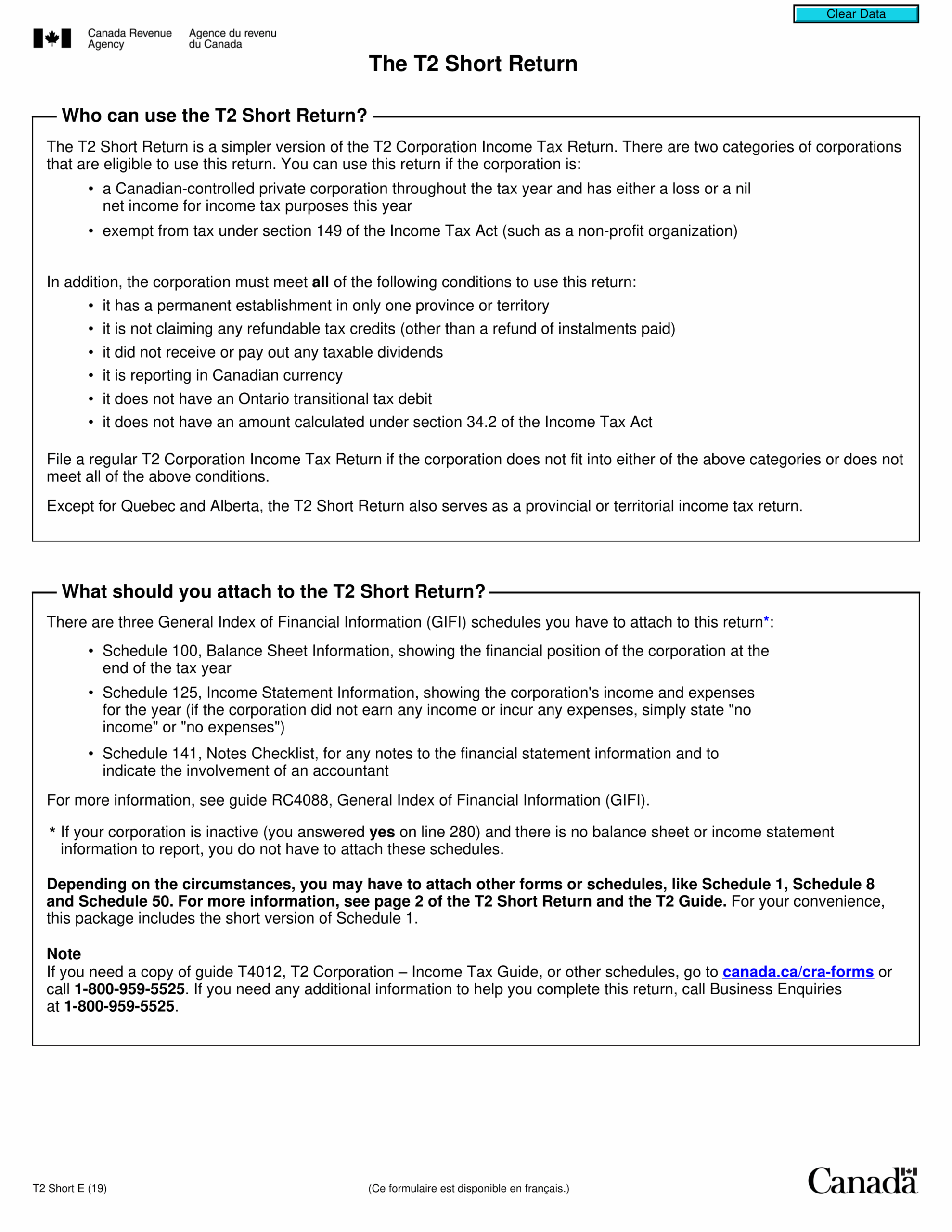Fill Form T2 Short 2024 2025 Complete Canadian Tax Forms Online