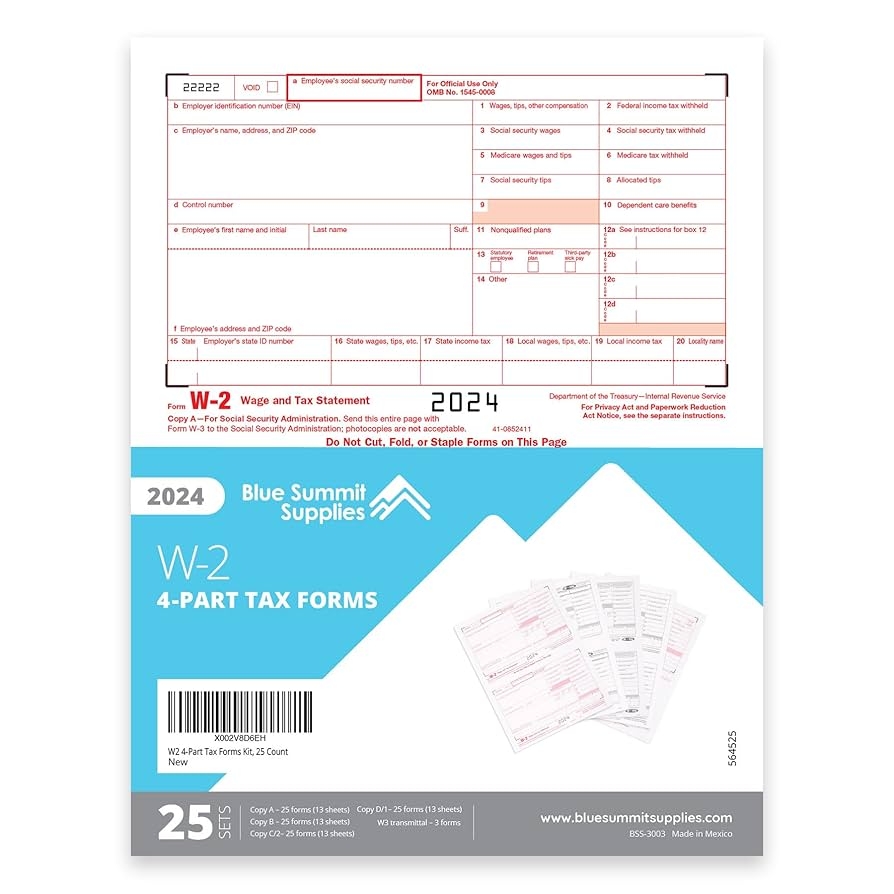 2021 W2 4 Part Tax Forms Kit 25 Employee Kit Of Laser Tax Forms Designed For QuickBooks And Accounting Software Amazon Sg Office Products