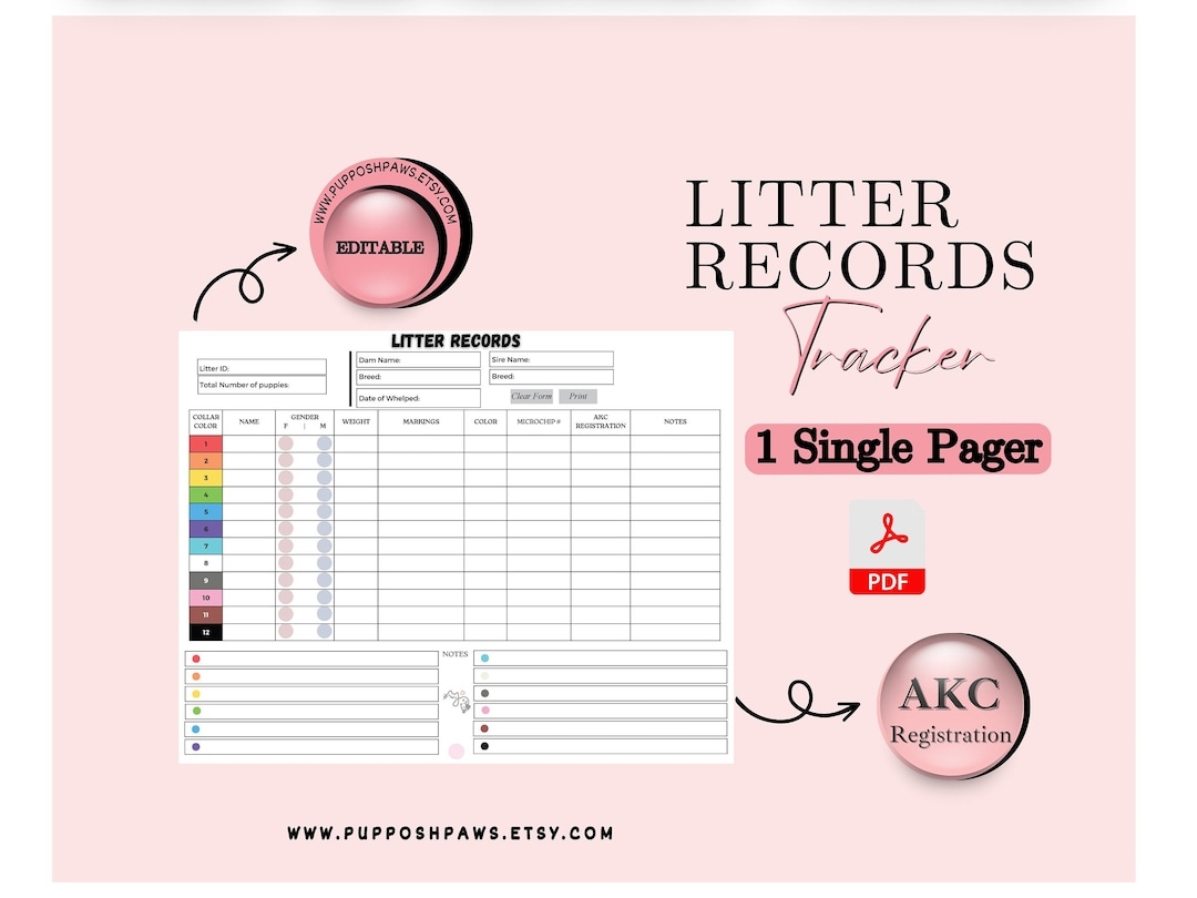 Fillable Litter Record Tracker Whelping Records Whelping Collar Identification Puppy Medical Record Weight Tracker AKC Etsy