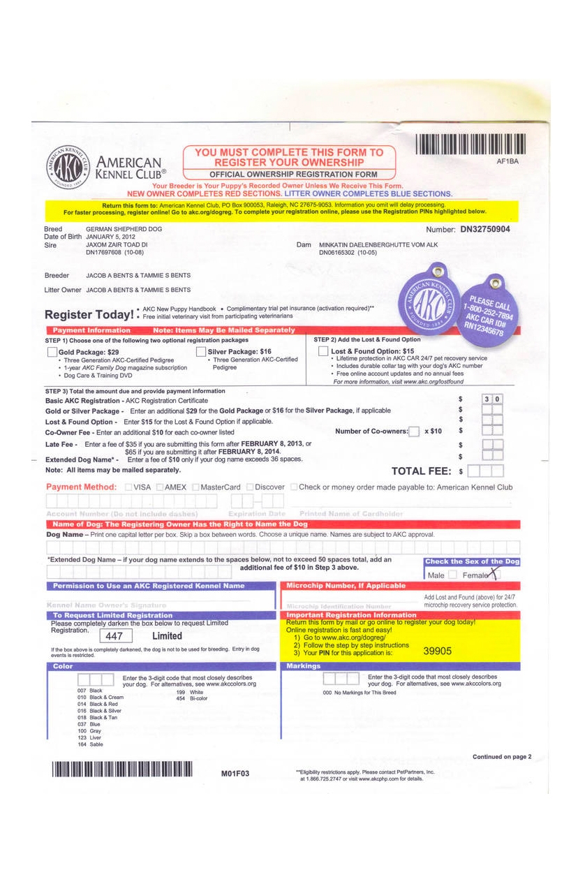 Printable Akc Litter Registration Form