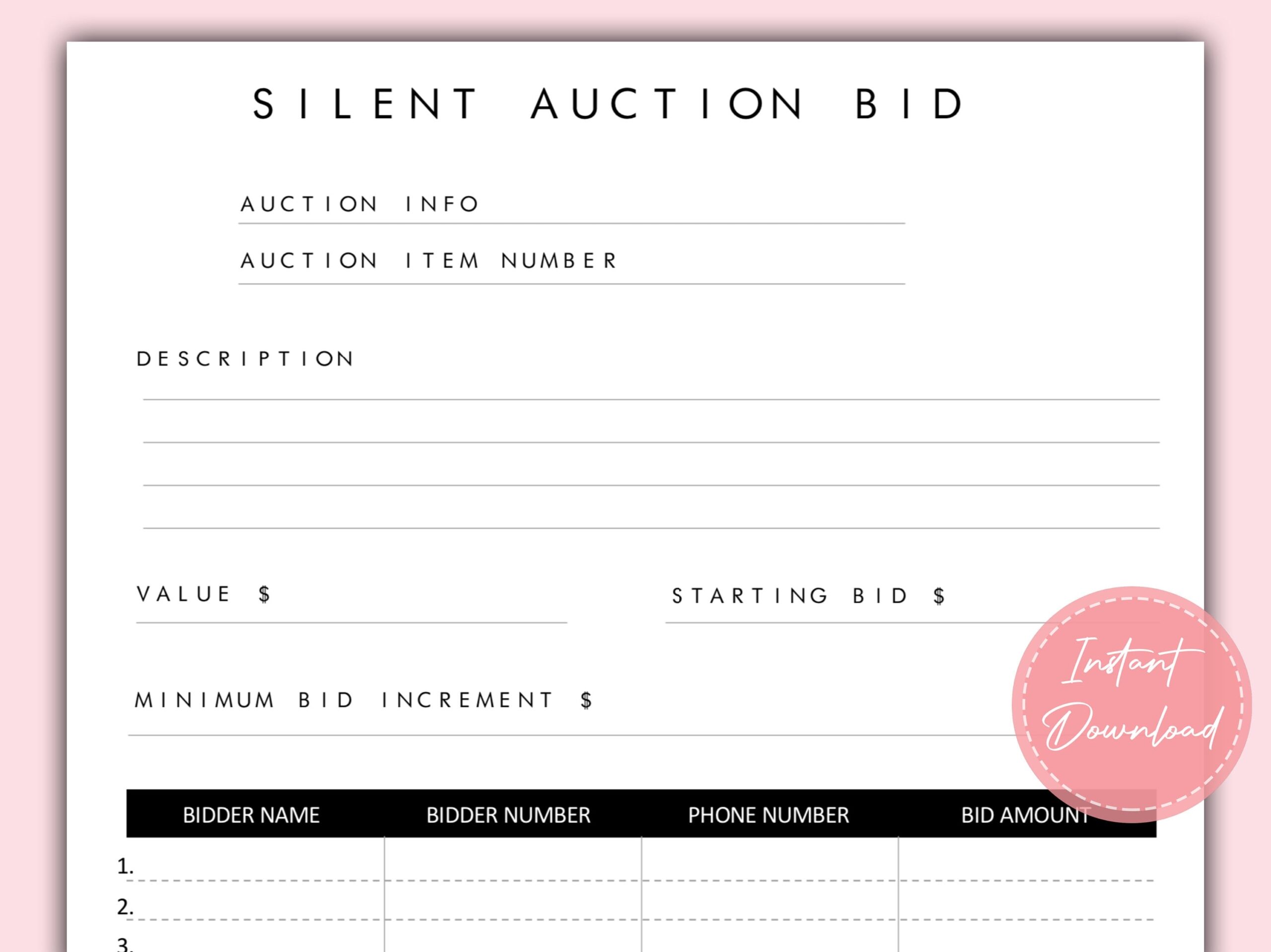 Silent Auction Bid Sheet Printable Fundraiser Event Bidding Form Silent Auction Bundle PDF Instant Download US Letter Etsy Australia