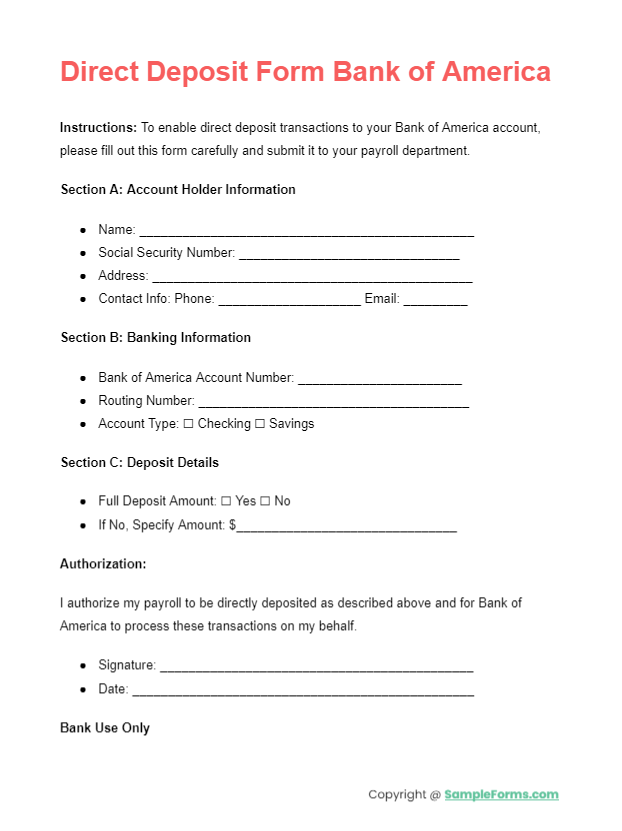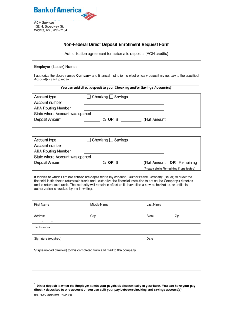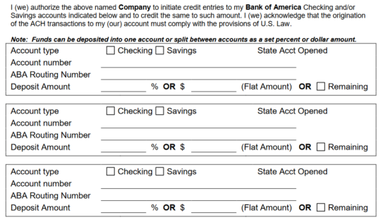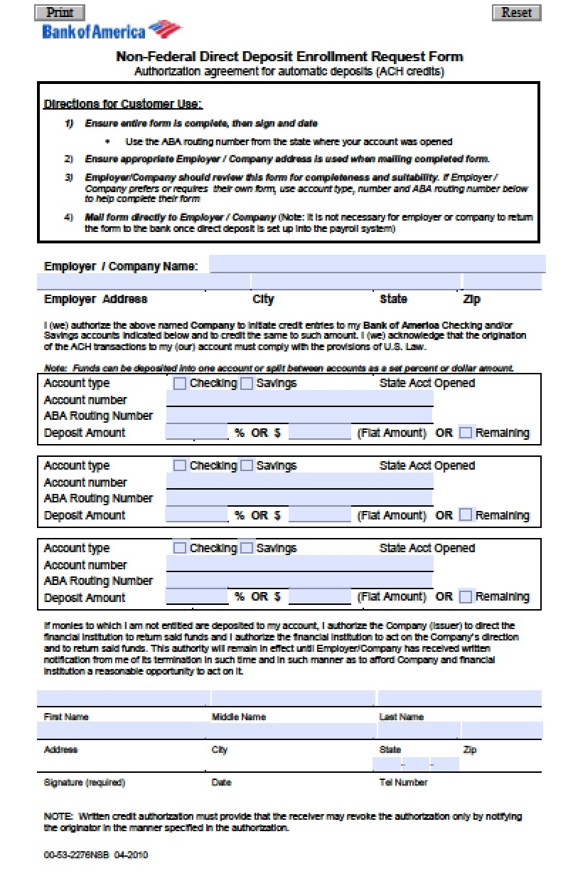 Download Bank Of America Direct Deposit Form PDF WikiDownload