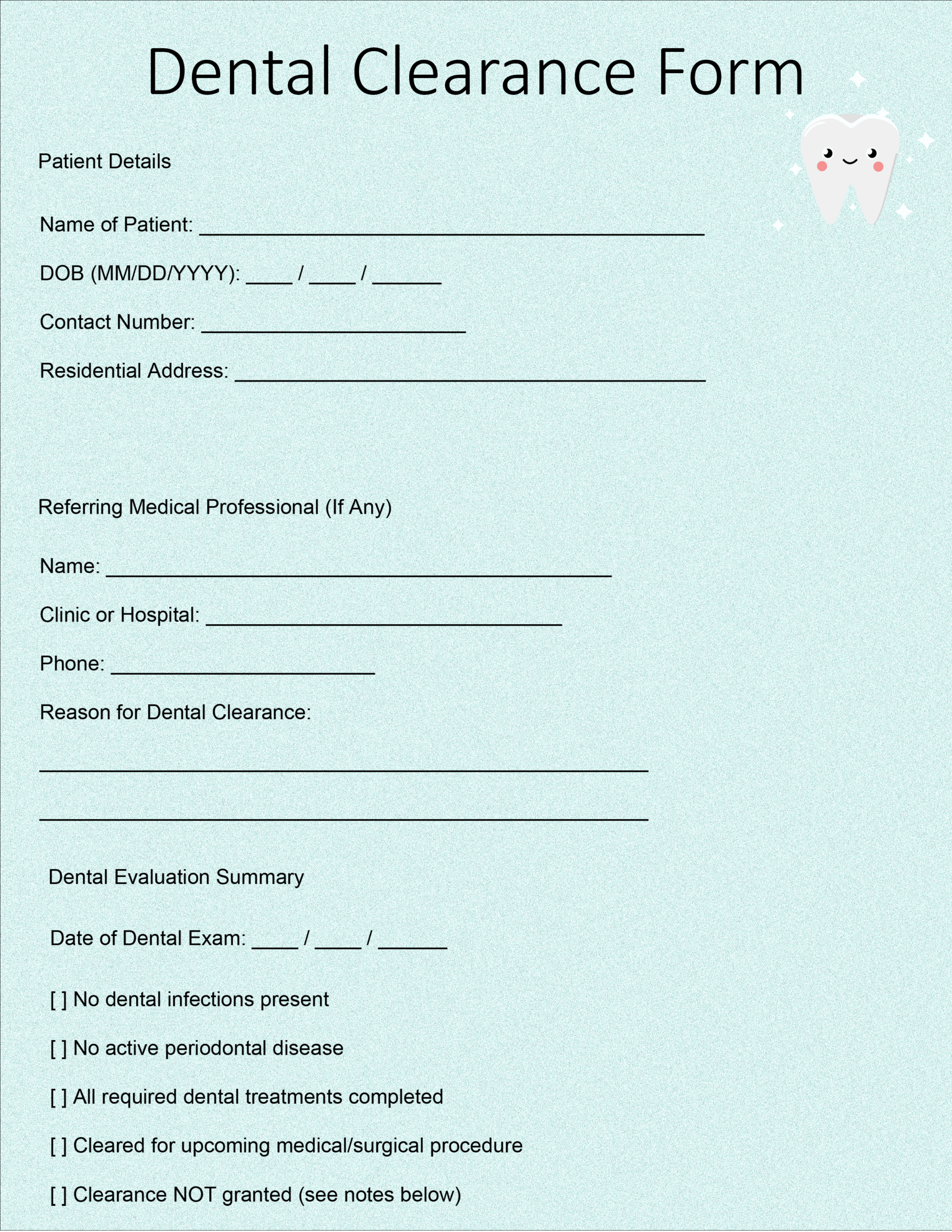 Printable Dental Clearance Form Printable Party FavorsPrintable Dental Clearance Form Printable Party Favors