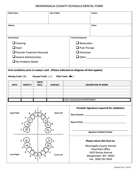 Printable Dental Examination FormPrintable Dental Examination Form