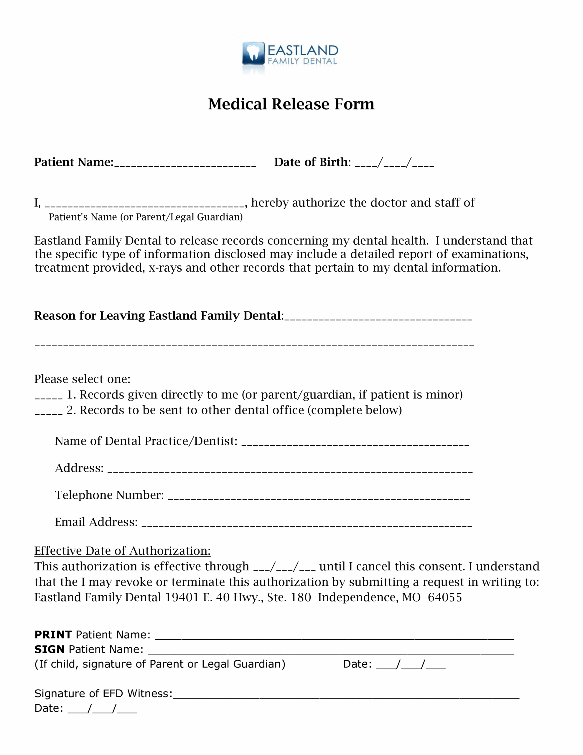 Dental Medical Records Release Form Templates At Allbusinesstemplates