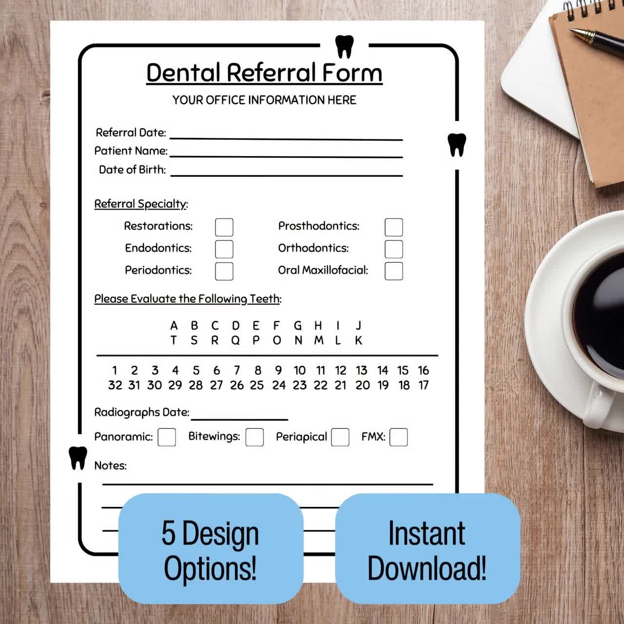 Personalized Dental Referral Form For Dental Office Form New Dentist Pediatric Dentist Orthodontist Periodontist Endodontist Printable PDF Etsy