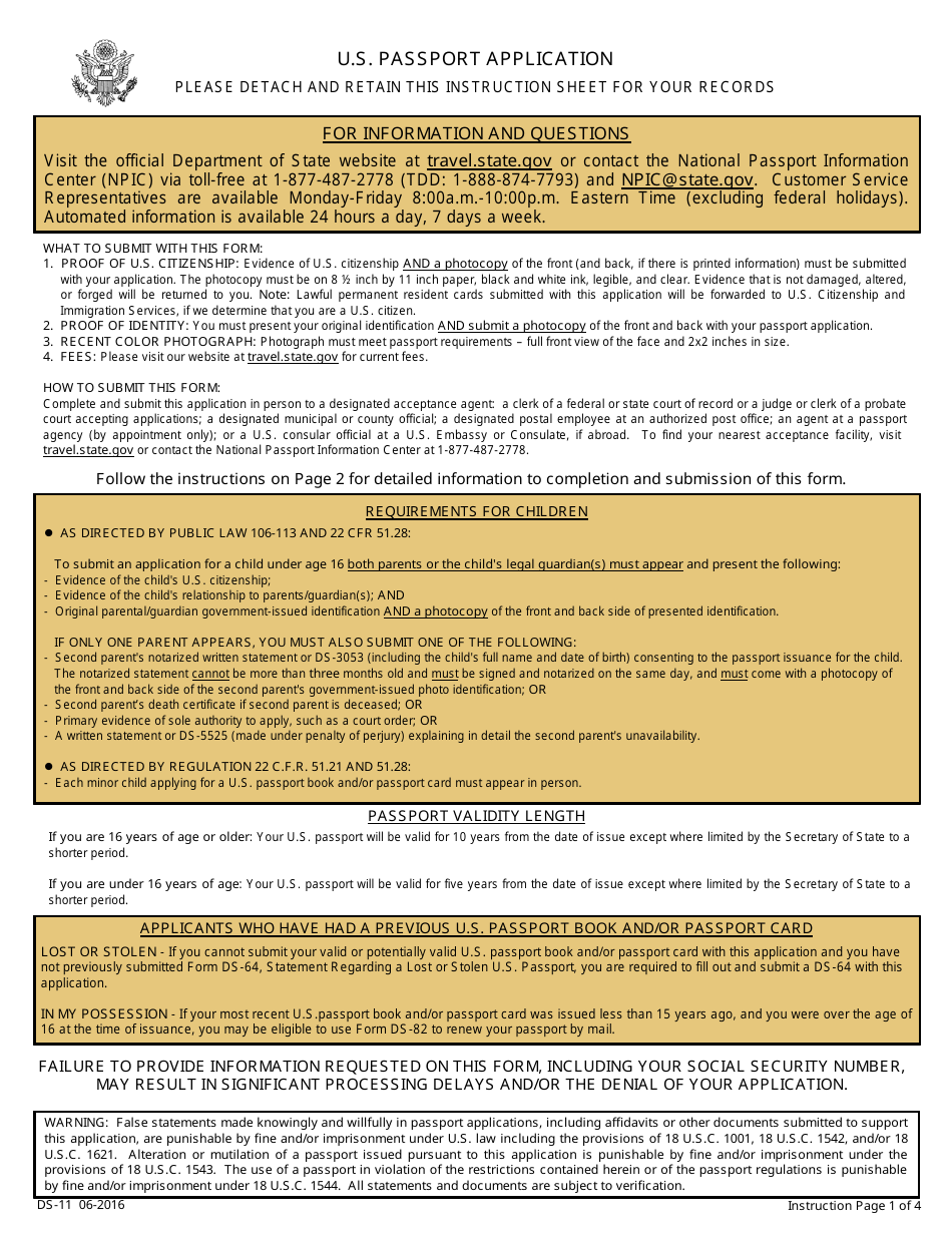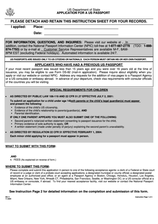 Free Passport Application Form DS 11 Apply For A New Passport PDF