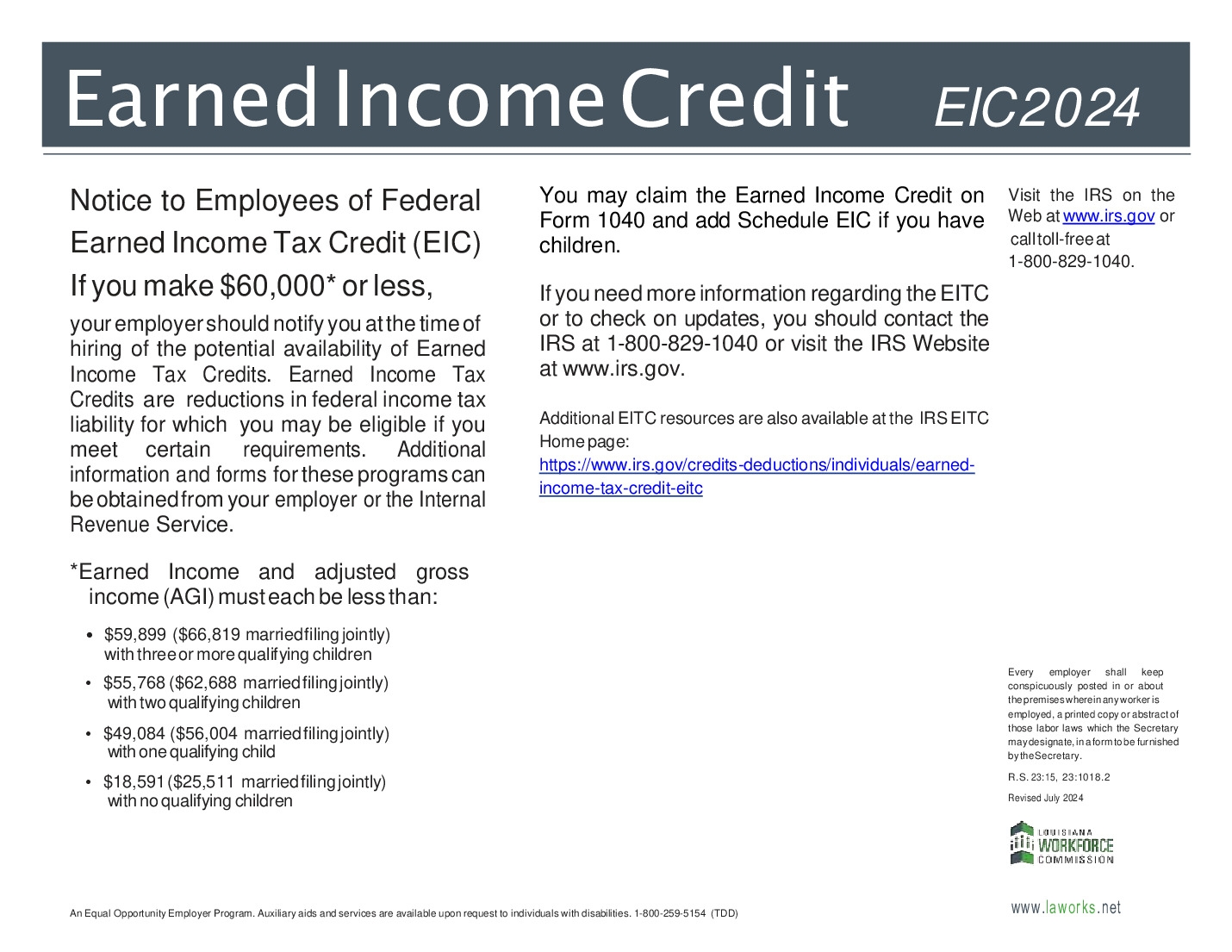 Free Louisiana Louisiana EIC Labor Law Poster 2025
