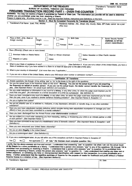 Printable Form 4473 Pdf